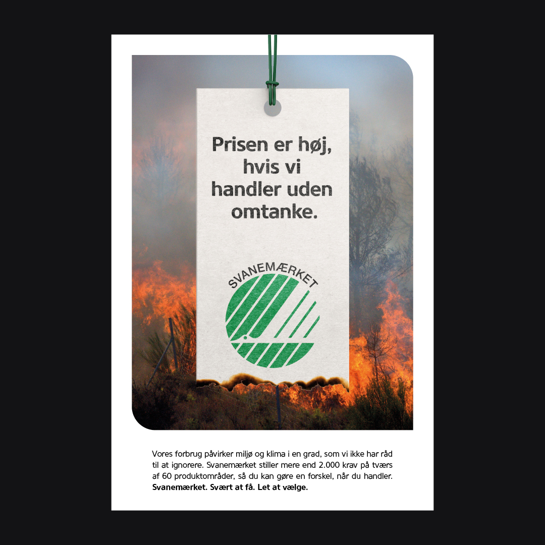 We developed a campaign that uses striking and unsettling imagery to confront consumers with the consequences of unsustainable consumption. At the same time, the campaign presents the Nordic Swan Ecolabel as the simple, tangible solution: by choosing products carrying the label, you actively make a positive difference. The message is clear, personal, and action-oriented.
